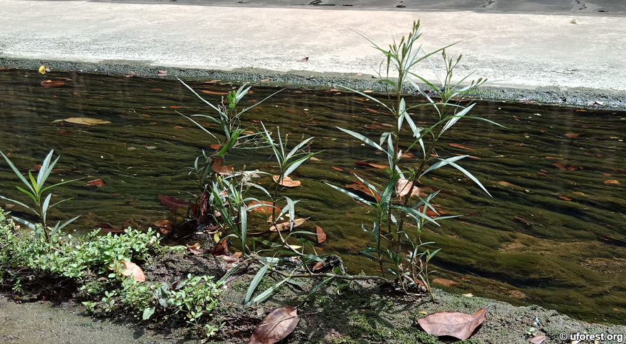 A cluster growing along a canal.