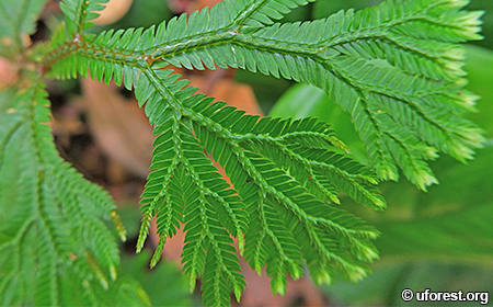 Close up of branches showing the two types of leaves of different sizes