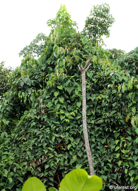 Where found, the Bearded Smilax often engulfs the tree it is on because of its aggressive growth. This can prevent successful regeneration of the forest. It's vegetative propagation and sharp spines also hinters active removal, though that is still being carried out.