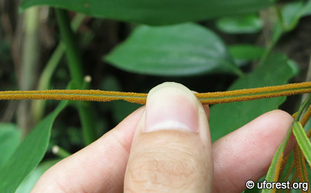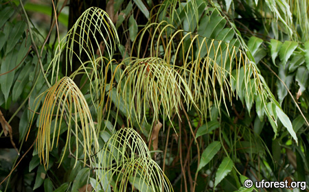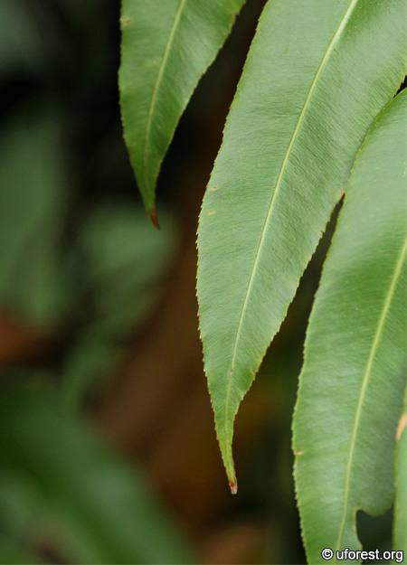 Among the climbing ferns with similar frond form, the serrated margins of Stenochlaena palustris will help to differentiate it apart from the rest. The young fronds are reddish.