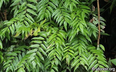Stenochlaena palustris is a very common fern in Singapore, and can be found in sunny areas with rather wet medium (Holttum, 1964). The rhizomes are long and creeping, often forming dense thickets. It also climbs up trees when the rhizome reaches the stem.