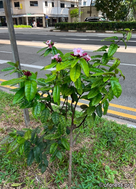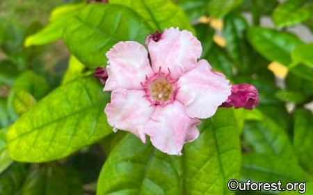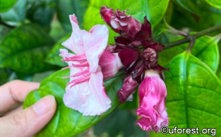 Strophanthus gratus has attractive white to rose-pink flowers with dark pink-red sepals.