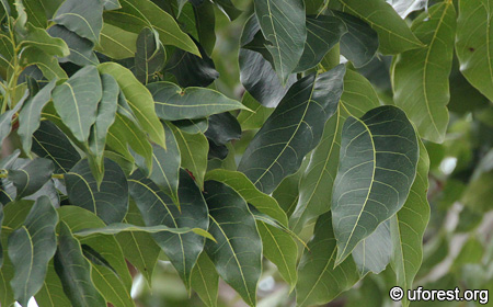 Large, dark green, and sickled shaped leaflets, that are arranged in clumps. This gives the tree a bushy feel. Another congenor cultivated in Singapore, Swietenia mahogani, is said to have much smaller leaflets, and also smaller fruits (Corner, 1997).