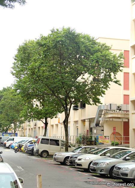 A smaller, cultivated Salam at a carpark.