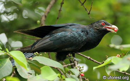 A male Asian Koel feeding on the fruit.
