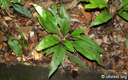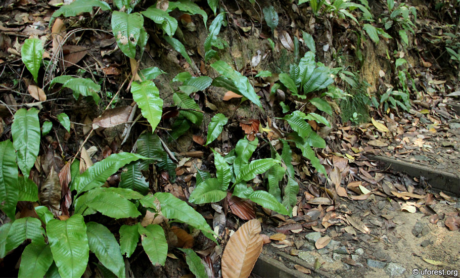 The Singapore Fern growing on slopes beside a trail in Bukit Timah Nature Reserve.