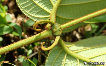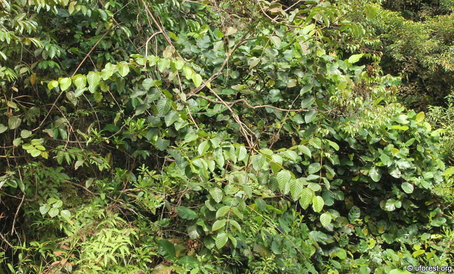 One must know how to identify an Uncaria species first, which is a climber, with opposite leaves and have a pair of large recurved hooks at the base of the petioles. Uncaria cordata has broad large leaves with cordate bases and have a diagnostic bi-lobed stipule (Tan et al., 1995).