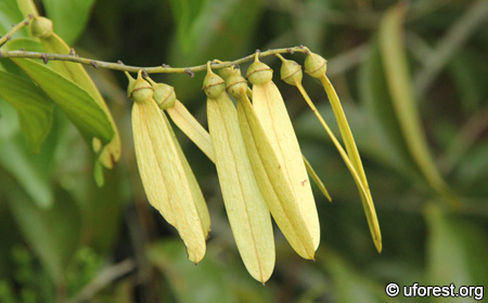 Ventilago malaccensis is a scrambling woody vine found in our forests. The leaves are alternately arranged and serrated at the margins. The single winged fruit is diagnostic.