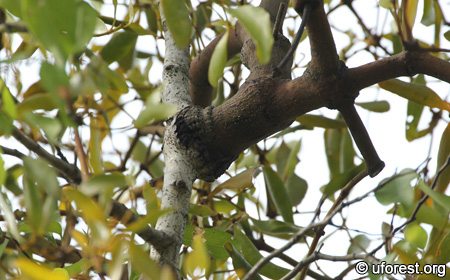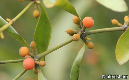 Unlike other mistletoes, Viscum species do not have secondary haustoria that runs along its host. It is commonly recorded on Ficus species though it is also known to occur on many other species (Barlow, 1997). This appears to coincide with my observations in Singapore.