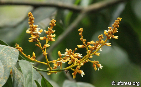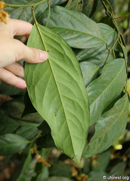 Xanthophyllum vitellinum is a tree growing up to 30m tall. It has distinct pointed axillary buds. The leaf margins are slightly rolled inwards. The secondary venation are depressed, while the mid-vein is raised on the upper surfaces.