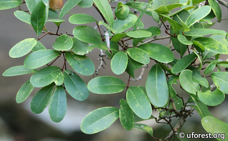 Xylocarpus granatum is a mangrove tree up to 20m that occur near the landward side of mangroves. It is most distinct for its flaking bark, as well as its oppositely arranged leaflets that are oval or rounded.